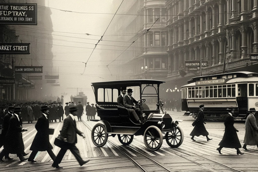 Le premier grand film faisant appel à des voitures est probablement “The Kid Auto Races at Venice” de Charlie Chaplin en 1914, dans lequel Chaplin joue un personnage maladroit qui perturbe une course de voitures. Cependant, ce n’est que dans les années 50 que les voitures ont commencé à jouer un rôle plus important dans les films.